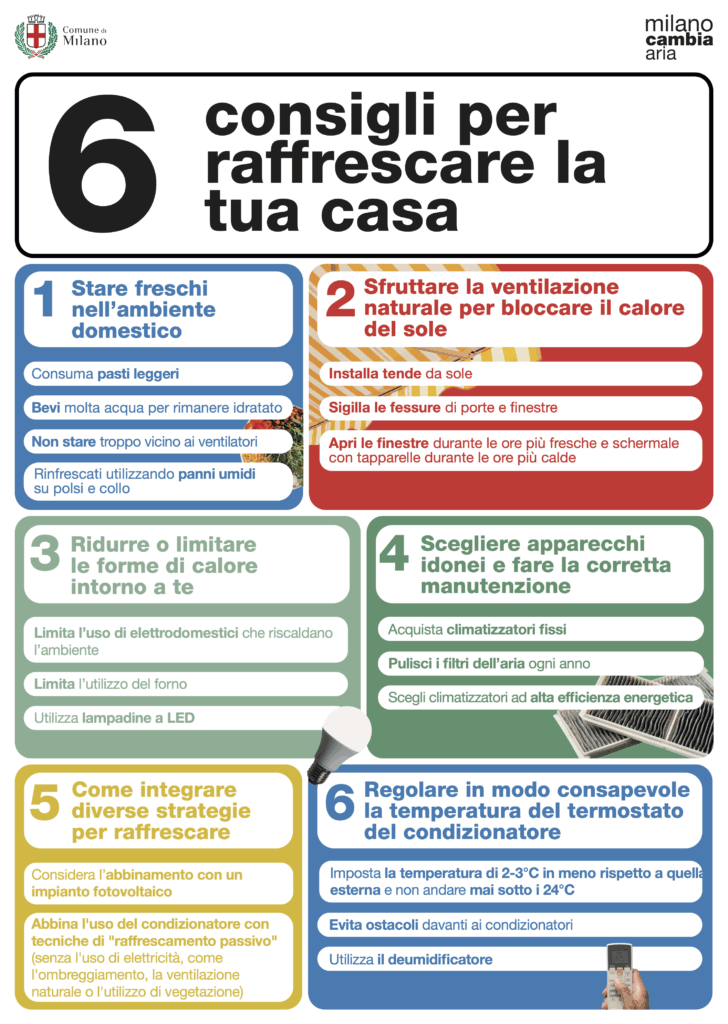 La campagna “Milano cambia aria” del Comune di Milano ha diffuso un volantino con 6 consigli ai cittadini per raffrescare la casa: almeno 5 chiamano in causa i nostri specialisti del settore.