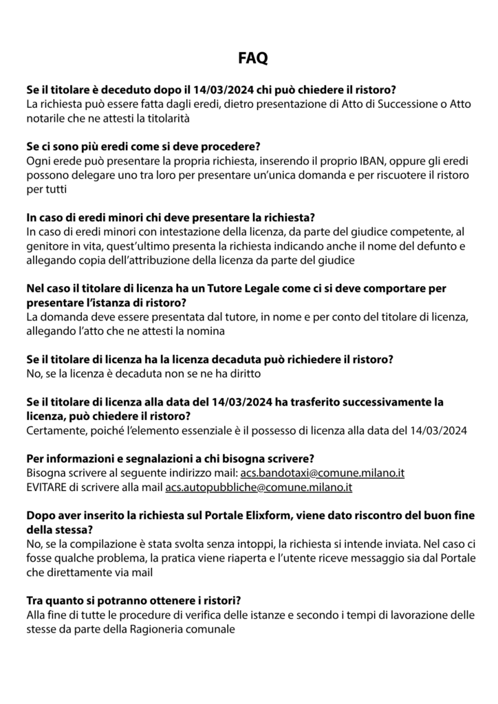 È finalmente possibile richiedere il contributo legato alla redistribuzione dei proventi derivanti dal bando per le nuove licenze taxi pubblicato nel 2024,